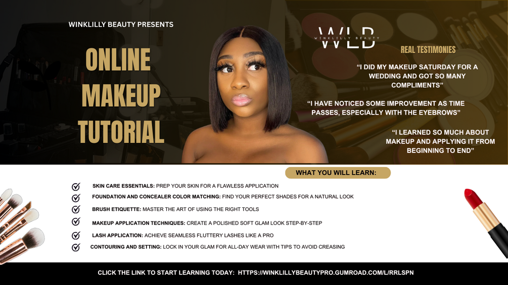 Master makeup basics in this step-by-step online course taught by licensed cosmetologist Altoria, founder of WinkLilly Beauty. Whether you're a beginner or beauty lover ready to elevate your Glam, this class gives you the pro tools and techniques to Slay with confidence.